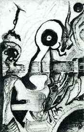| Oskar Davičo: Crtež, 1930. razblaženo ulje na kartonu, 500x320 mm / MSU |